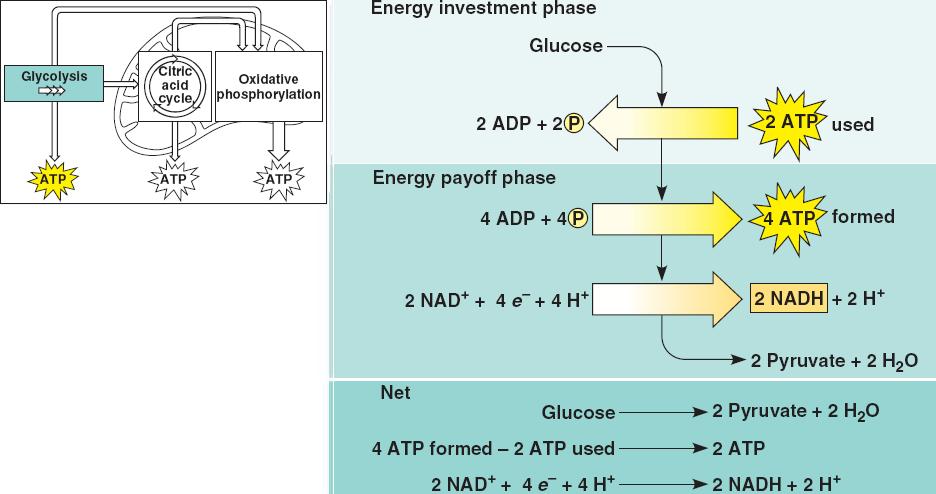 Note that fermentation itself yields no ATP molecules; it serves to recycle NADH back to NAD+, which is reused in glycolysis.