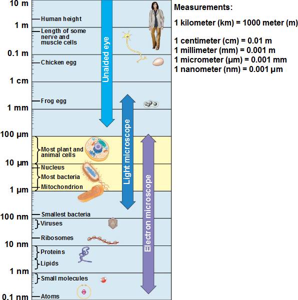The average eukaryotic cell is about 100 μm (100 x 10-6 m. = 10-4 m.) long.