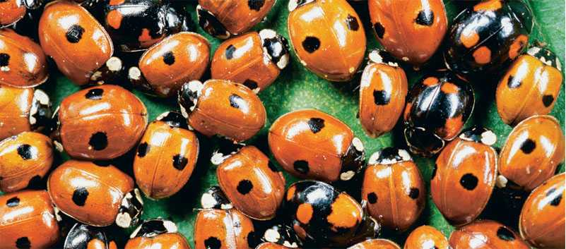 in color and dot patterns among the members of this population of ladybird beetles is