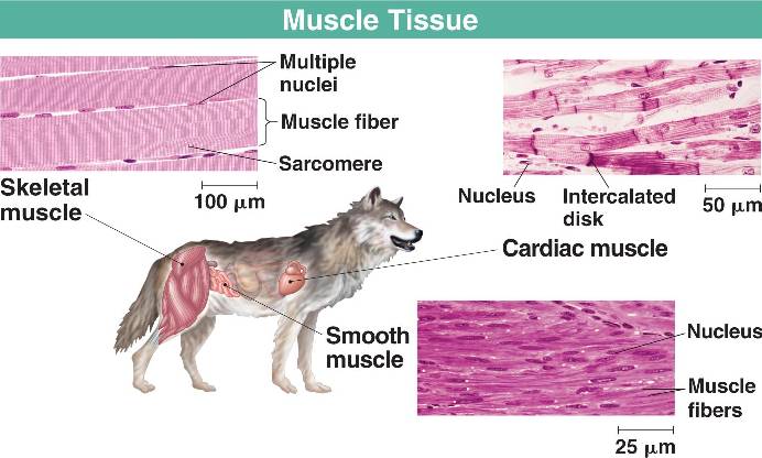 Cardiac muscle (striated, intercalated discs)