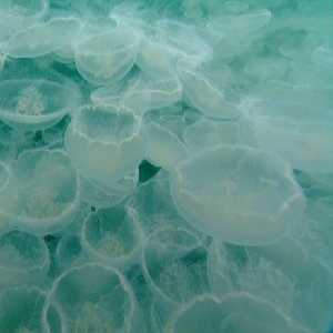 | 6:55 | Copepod leaves feeding trails | 8:00 | Sea Nettle (up to 30 kg) and Moon Jelly (Common Jellyfish) feed on Copepods | 11:25 | Basking Shark filters plankton |