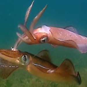 | 38:00 | Hooded Sea Slug swims and feeds on plankton (British Columbia) | 40:00 | Handfish walking among Kelp (Tasmania) | 41:10 | Australian Squid ? mating by passing sperm packet |