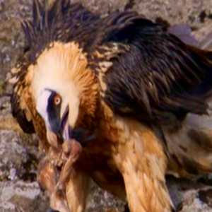 Lammergeier (bearded vulture) can glide on 10-foot wings, steals bones left over by |