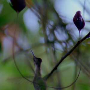 Marvellous Spatuletail Hummingbird male has elaborate tail and displays for female (Peruvian Andes) |