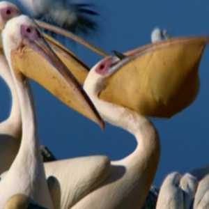 Great White Pelicans fly in V formation (echelon) (Dassen Island, South Africa) |