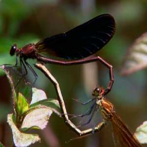 Damselflies mate and form shape of a heart; eaten by frogs; |