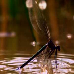 Damselfly wings break through surface tension of water after ovipositing (Southern France) |