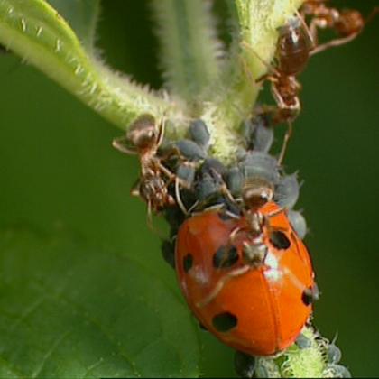 | 00:45 | Ants protecting aphids from ladybeetle | 03:30 | Lemon Ants protect Duroia trees and inject formic acid into competing Cedrela plants (Devil's Gardens, Peru) | 07:40 | Acorn knopper gall wasp injects egg in flower |