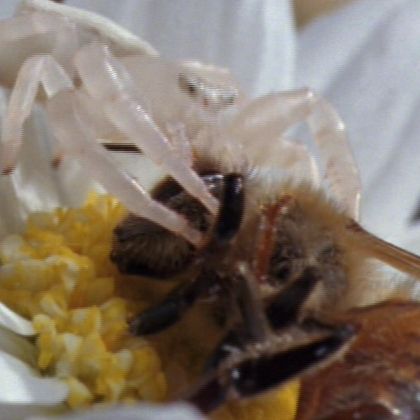 | 13:10 | Gall produces nectar to attract ants to repel parasitic wasp (Hungary) | 14:40 | Burnet Moth carries pollinia of Pyramidal Orchid | 15:45 | White Crab Spider catches honeybee |