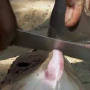 Blacktip Reef Shark fin sliced for shark fin soup (Pomene, Mozambique; sharks sent to Maputo) |