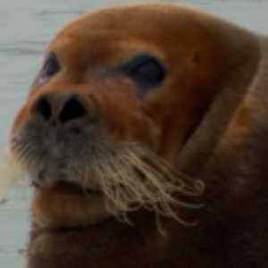 Bearded Seal is largest arctic seal, has red head from rooting on iron-rich bottom |