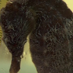 Reunion Seahorse is prized in medicinal trade; female has banded body; males have smooth brooding pouch |