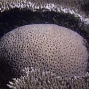 Slow growing brain coral fights larger, faster growing table coral |